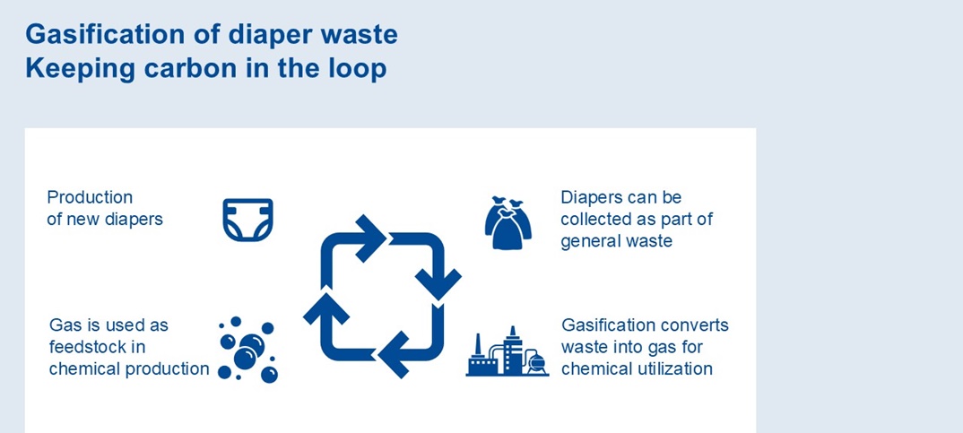 BASF and TU Wien’s innovative gasification technology enabled this result. Gasification is a process that converts solids like waste into gas at high temperatures above 600 °C. Thanks to this process, diaper waste is sanitized and converted into high-quality feedstock, matching the standards of virgin resources.