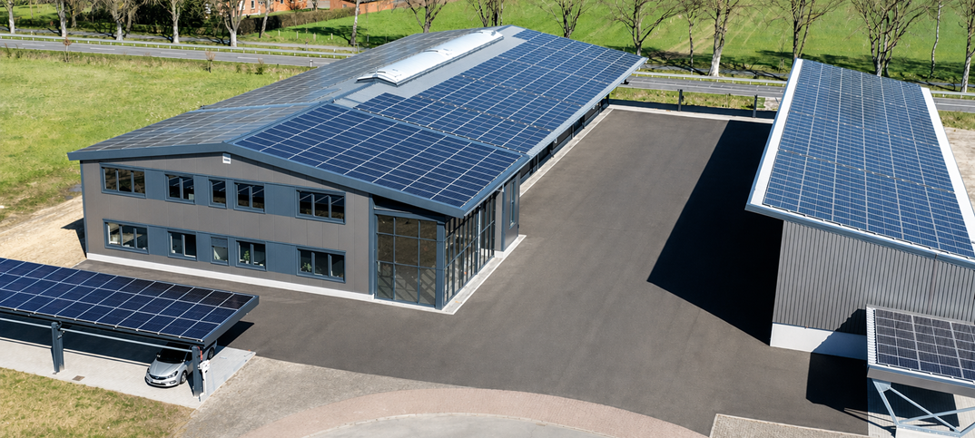 Auf dem Firmengelände stehen zudem eine Schüttguthalle mit hoch anschüttbaren Wänden und unterschiedlichen Spannweiten sowie Parkplatzüberdachungen mit Aufdach- und Indach-Photovoltaikanlagen.