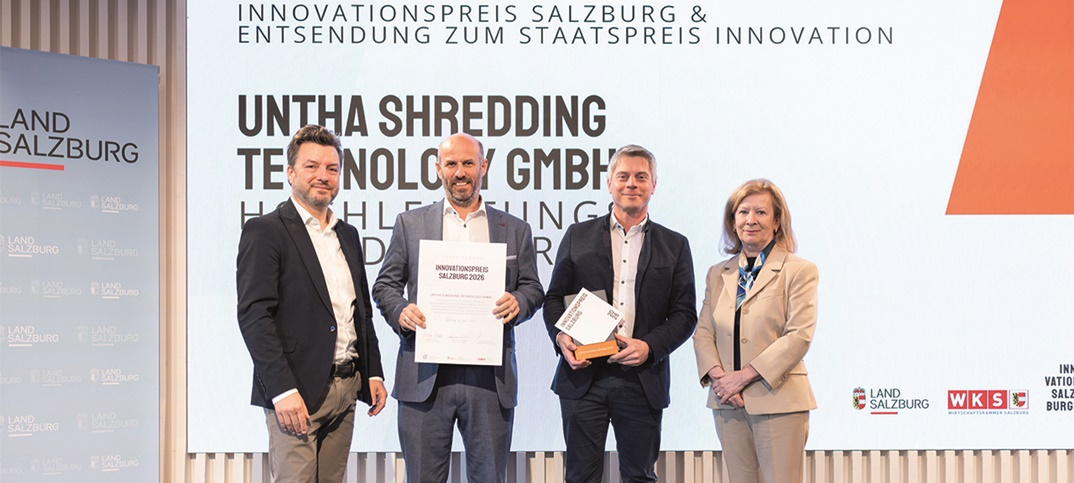 Die UNTHA shredding technology GmbH mit Sitz in Kuchl erhält den Innovationspreis Salzburg 2026 – eine hochkarätige Auszeichnung für innovative Unternehmen, deren marktreife Projekte die Qualität und Vielfalt der regionalen Wirtschaft unter Beweis stellen.