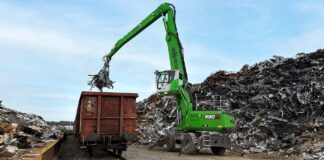 Umschlagmaschine aus grünem Stahl im Schrottrecycling